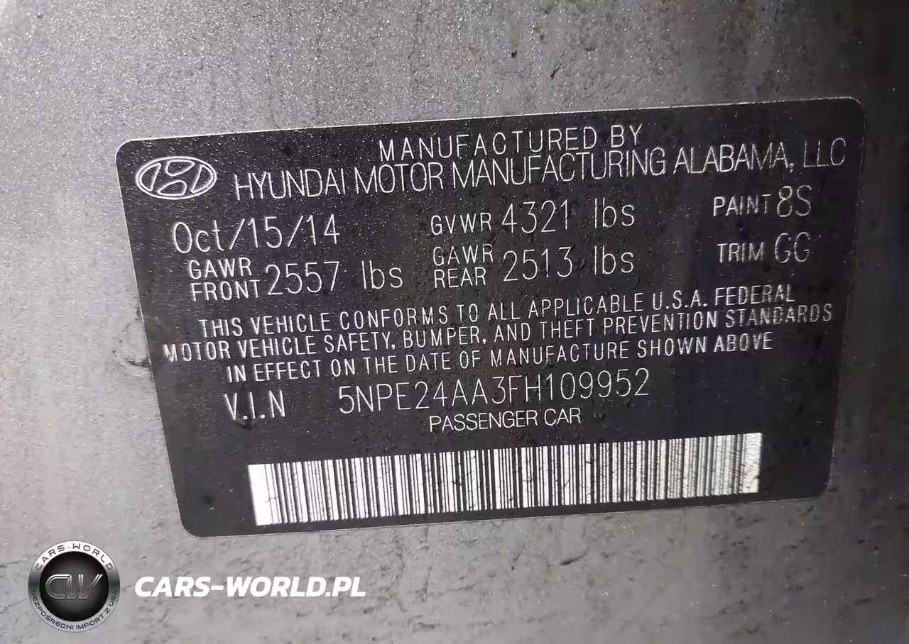 IAAI Nr: I-44179085 VIN: 5NPE24AA3FH109952 Port: Elizabeth, NJ