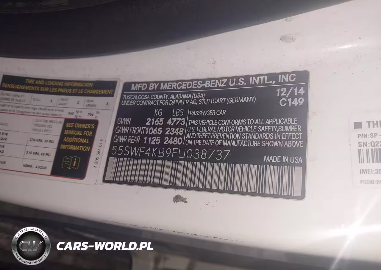 IAAI Nr: I-44181035 VIN: 55SWF4KB9FU038737 Port: Elizabeth, NJ