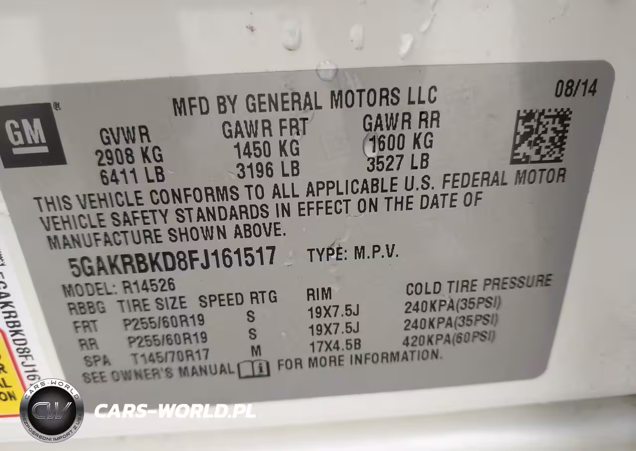 IAAI Nr: I-44183381 VIN: 5GAKRBKD8FJ161517 Port: Savannah, GA