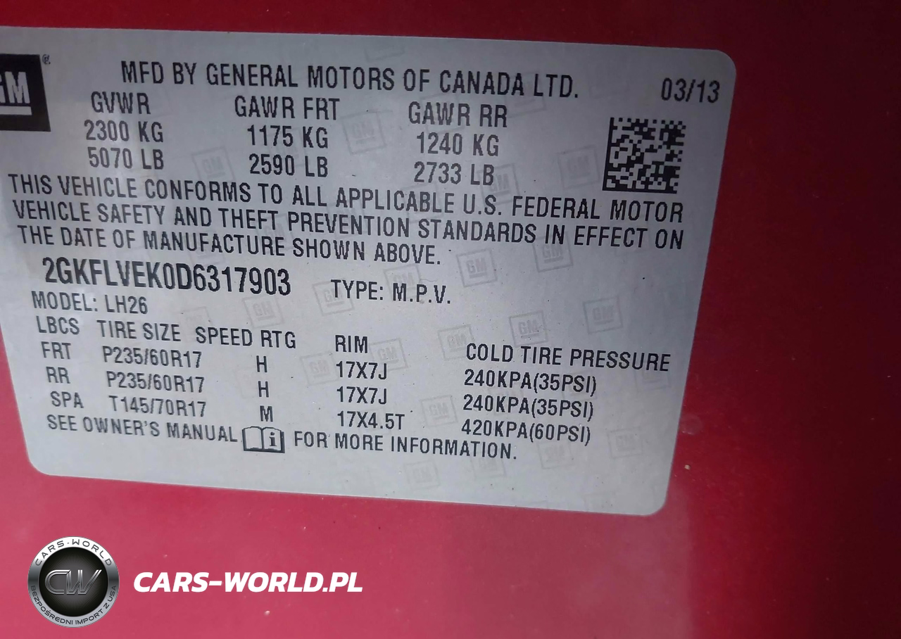 IAAI Nr: I-44183394 VIN: 2GKFLVEK0D6317903 Port: Elizabeth, NJ