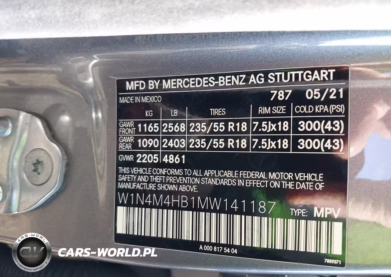 IAAI Nr: I-44186245 VIN: W1N4M4HB1MW141187 Port: Elizabeth, NJ