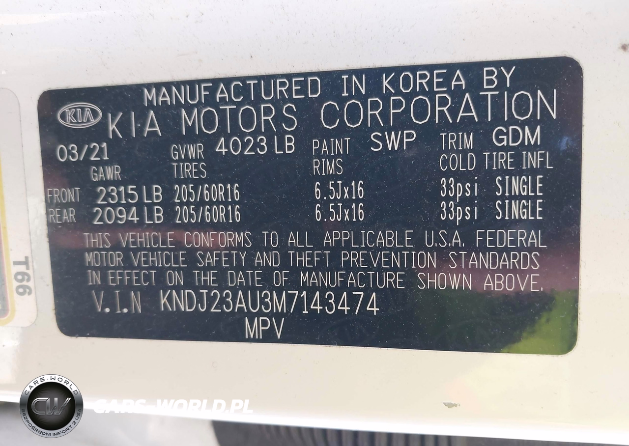 IAAI Nr: I-44191041 VIN: KNDJ23AU3M7143474 Port: Los Angeles, CA