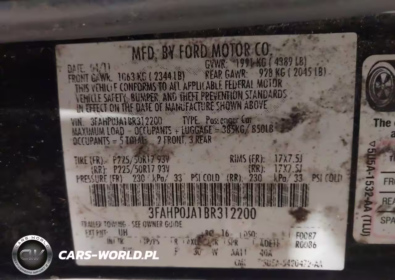 IAAI Nr: I-44191539 VIN: 3FAHP0JA1BR312200 Port: Savannah, GA