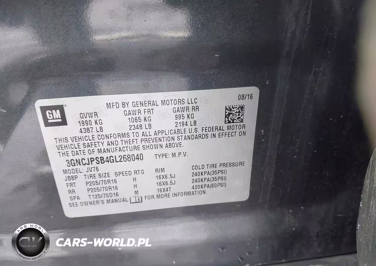 IAAI Nr: I-44191946 VIN: 3GNCJPSB4GL268040 Port: Elizabeth, NJ