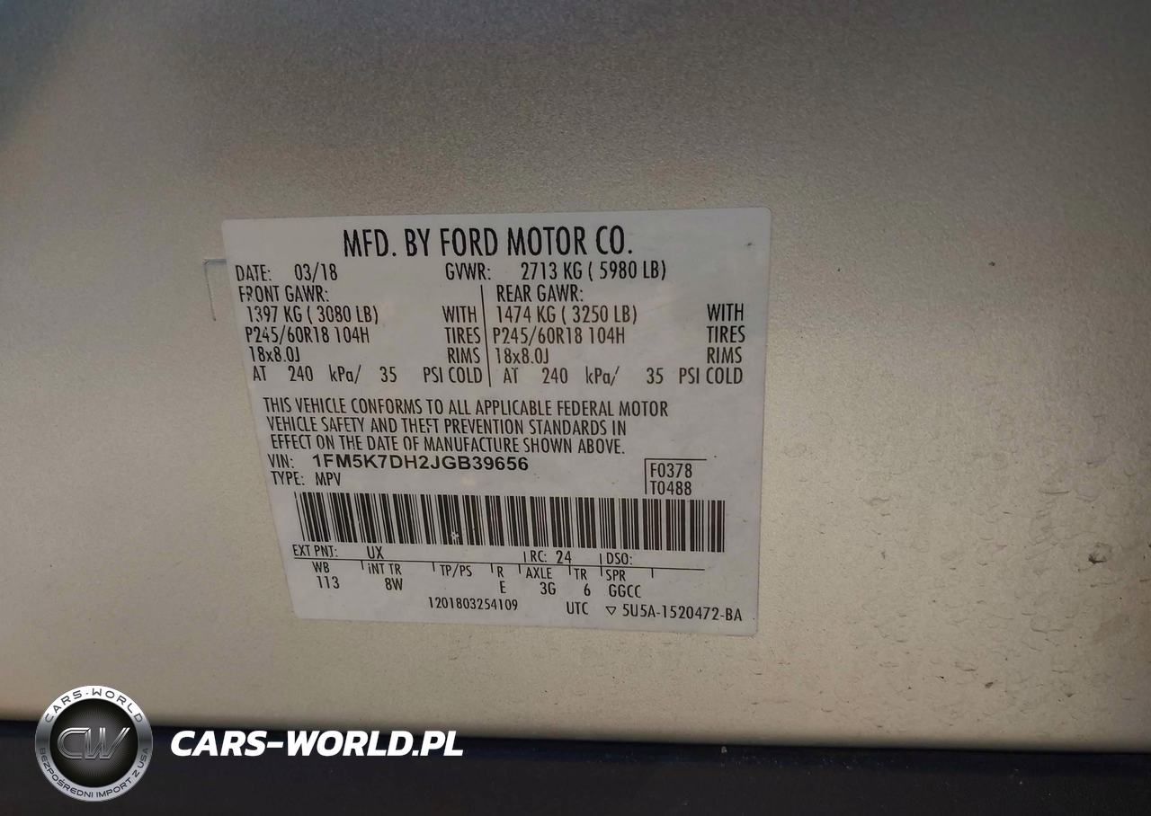 IAAI Nr: I-44193358 VIN: 1FM5K7DH2JGB39656 Port: Savannah, GA