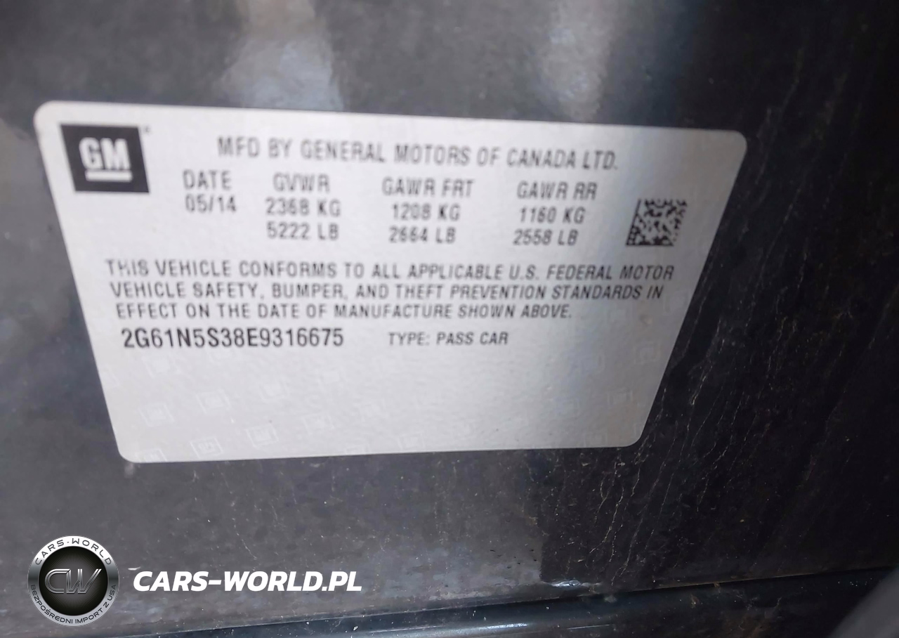 IAAI Nr: I-44193944 VIN: 2G61N5S38E9316675 Port: Indianapolis, IN