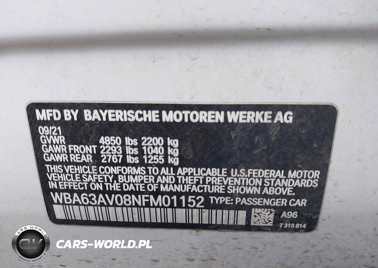 IAAI Nr: I-44194941 VIN: WBA63AV08NFM01152 Port: Houston, TX