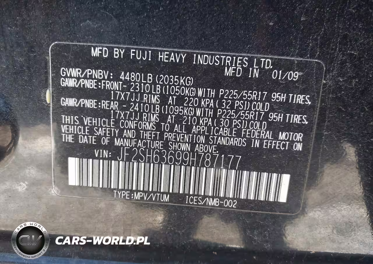 IAAI Nr: I-44194968 VIN: JF2SH63699H787177 Port: Elizabeth, NJ