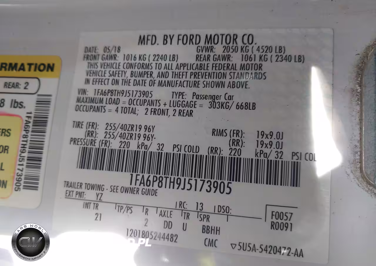 IAAI Nr: I-44198128 VIN: 1FA6P8TH9J5173905 Port: Elizabeth, NJ