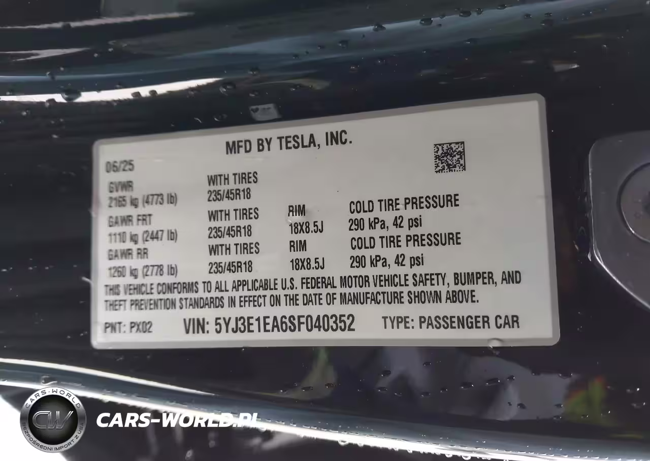 IAAI Nr: I-44200966 VIN: 5YJ3E1EA6SF040352 Port: Houston, TX
