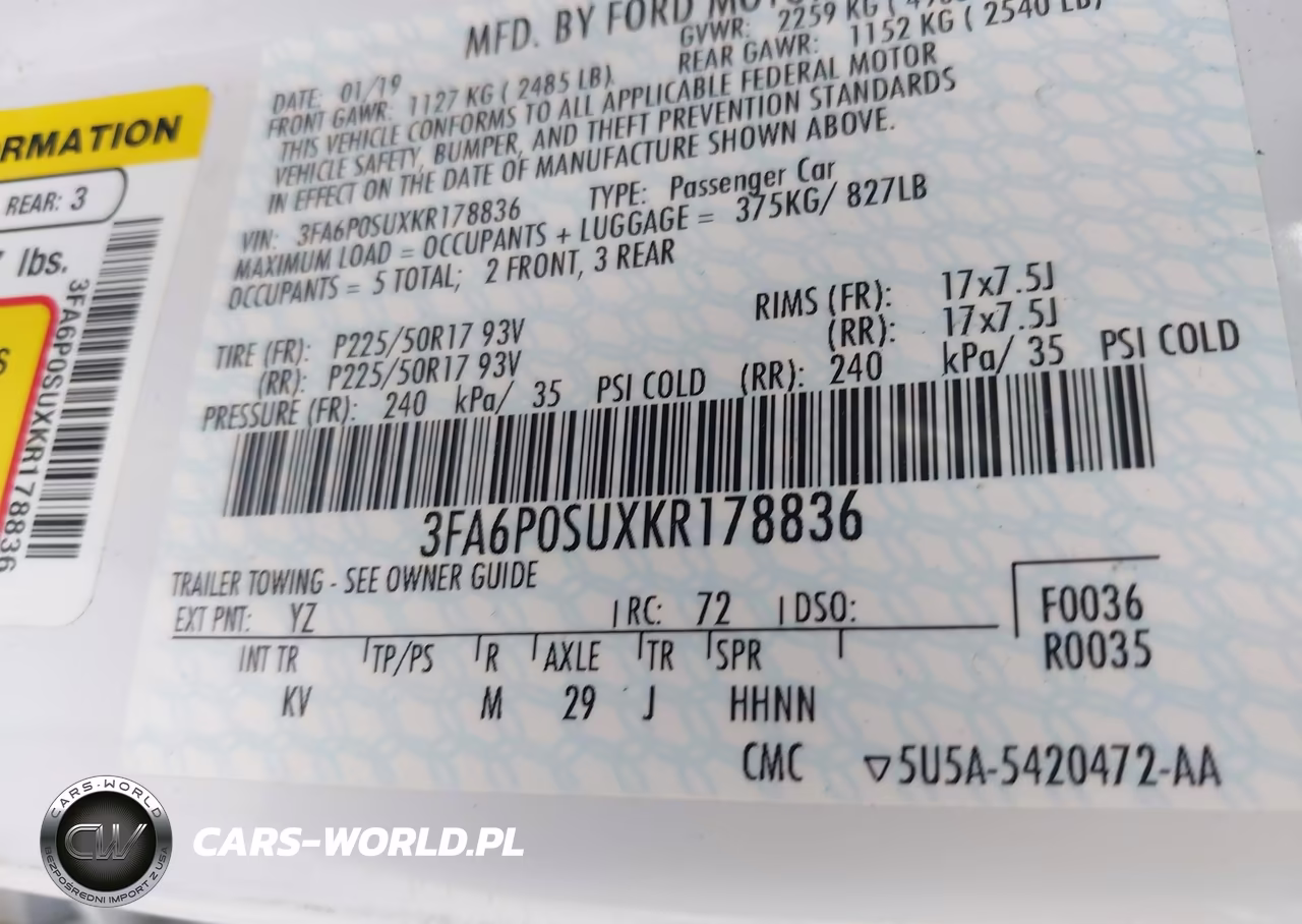IAAI Nr: I-44200987 VIN: 3FA6P0SUXKR178836 Port: Los Angeles, CA