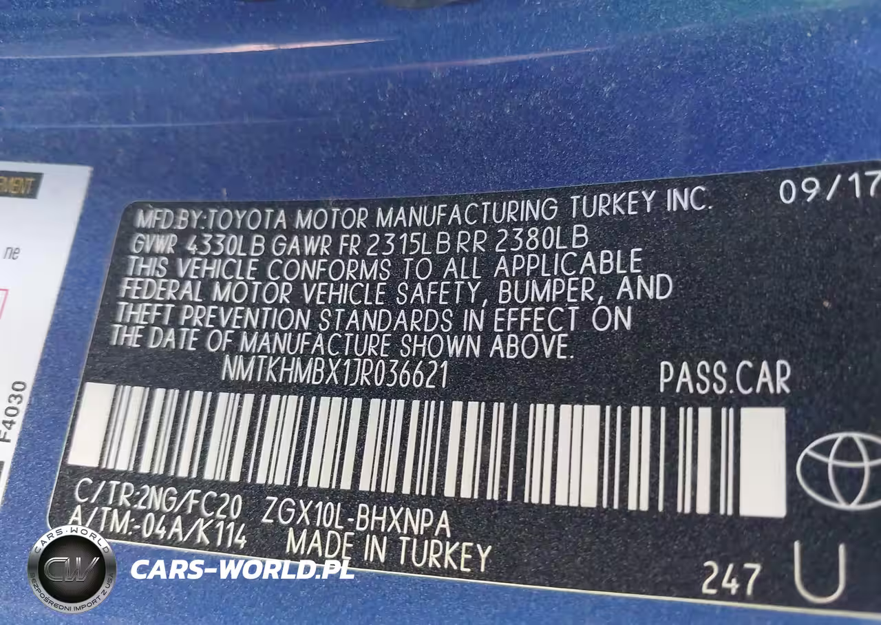 IAAI Nr: I-44201023 VIN: NMTKHMBX1JR036621 Port: Houston, TX