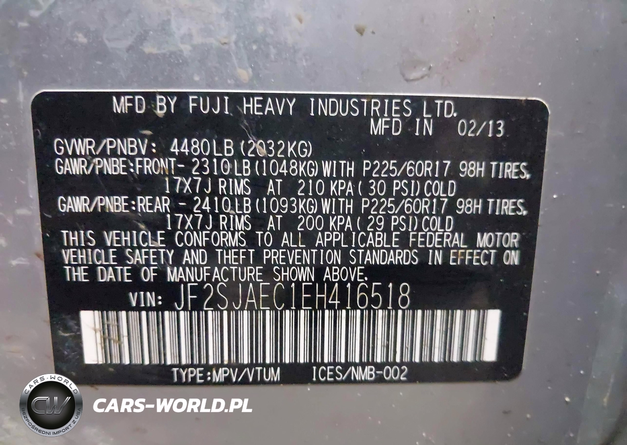 IAAI Nr: I-44205787 VIN: JF2SJAEC1EH416518 Port: Indianapolis, IN