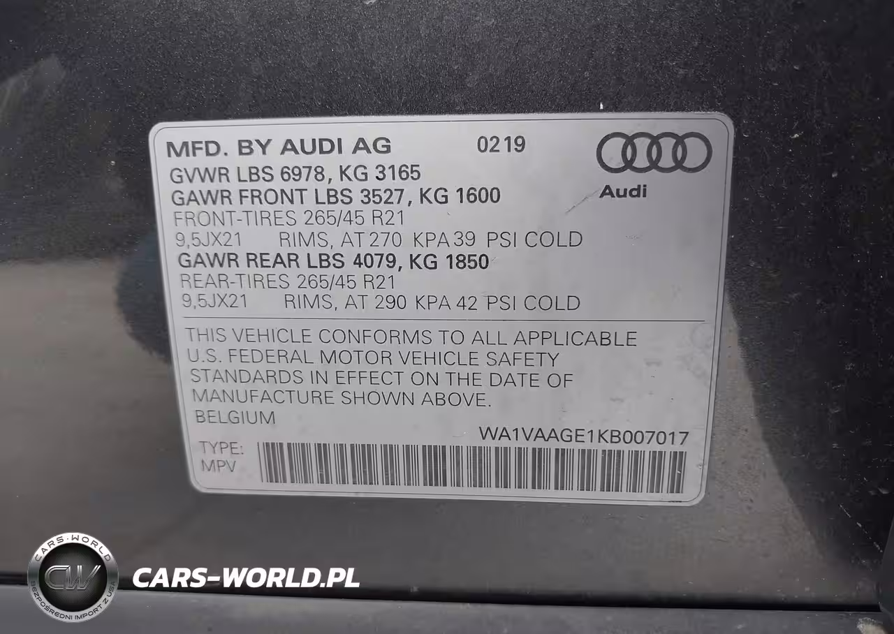 IAAI Nr: I-44205869 VIN: WA1VAAGE1KB007017 Port: Indianapolis, IN