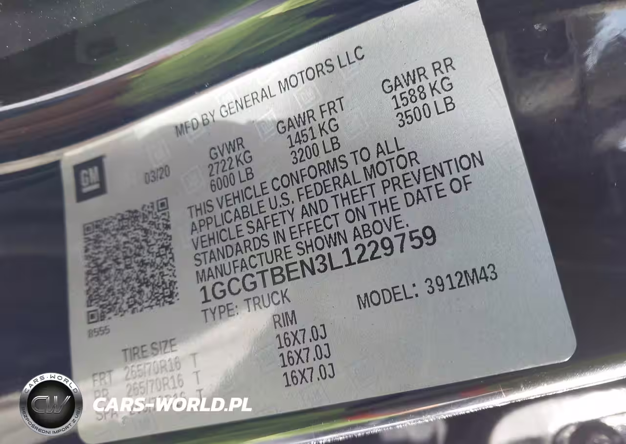 IAAI Nr: I-44205963 VIN: 1GCGTBEN3L1229759 Port: Indianapolis, IN