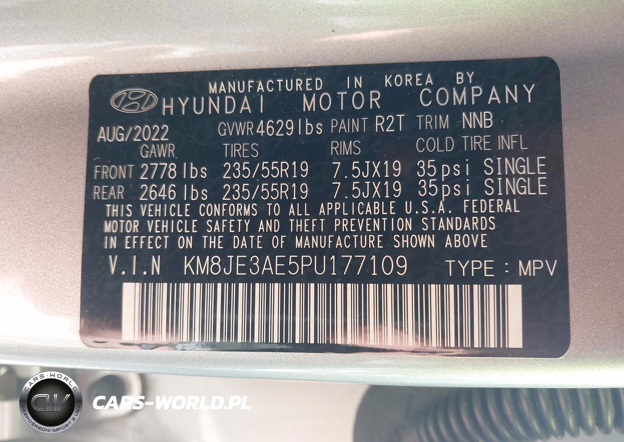 IAAI Nr: I-44209229 VIN: KM8JE3AE5PU177109 Port: Savannah, GA