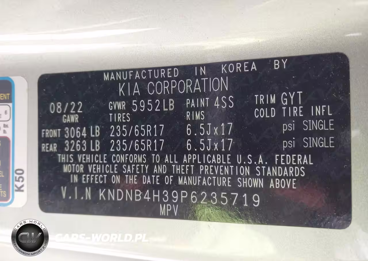 IAAI Nr: I-44209271 VIN: KNDNB4H39P6235719 Port: Indianapolis, IN