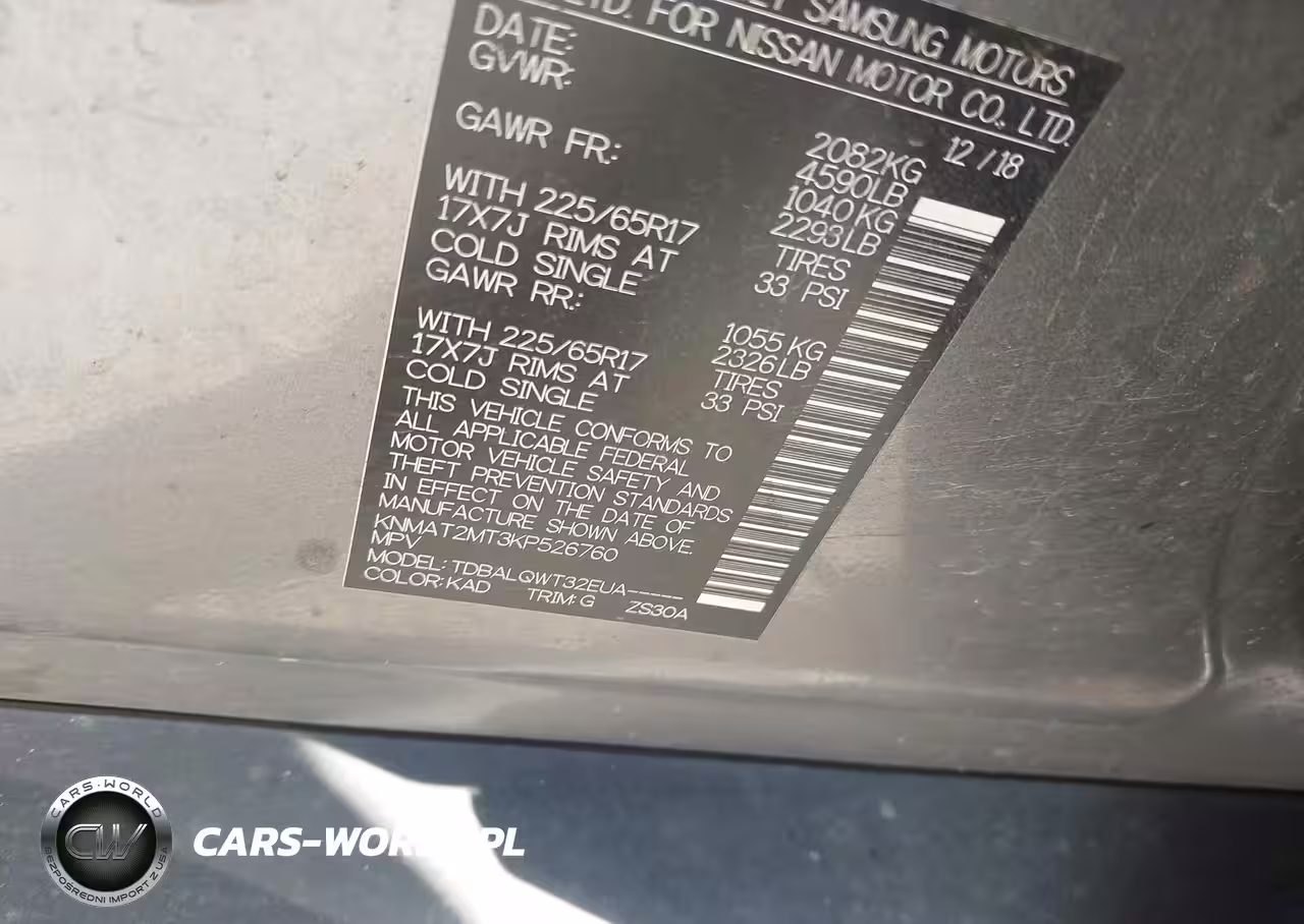 IAAI Nr: I-44209544 VIN: KNMAT2MT3KP526760 Port: Houston, TX