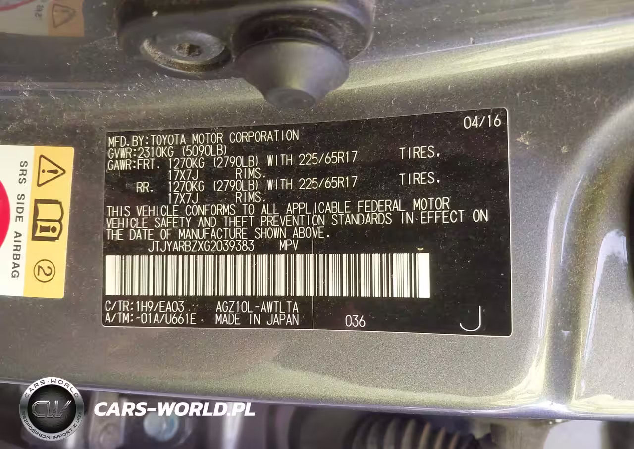 IAAI Nr: I-44210036 VIN: JTJYARBZXG2039383 Port: Savannah, GA