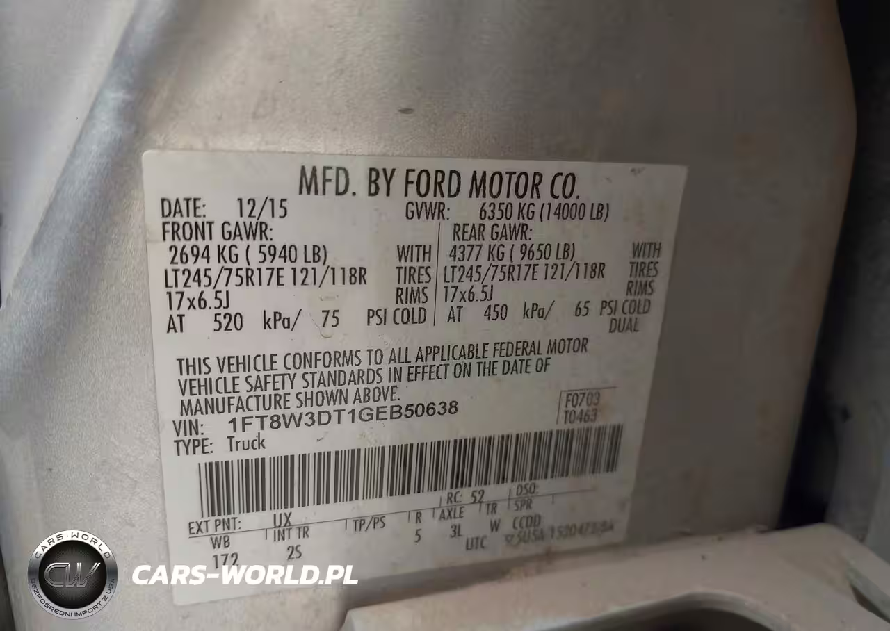 IAAI Nr: I-44210305 VIN: 1FT8W3DT1GEB50638 Port: Houston, TX