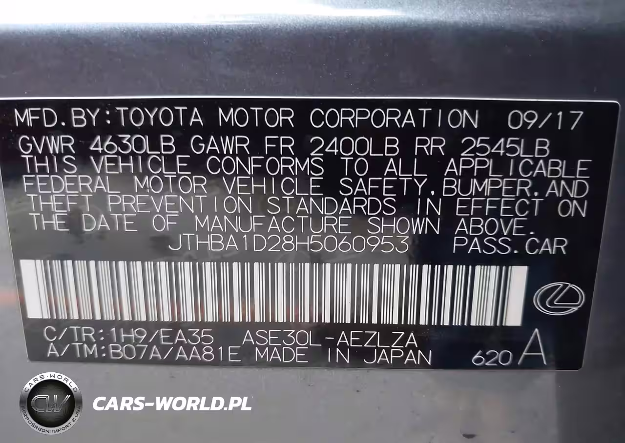 IAAI Nr: I-44212420 VIN: JTHBA1D28H5060953 Port: Los Angeles, CA