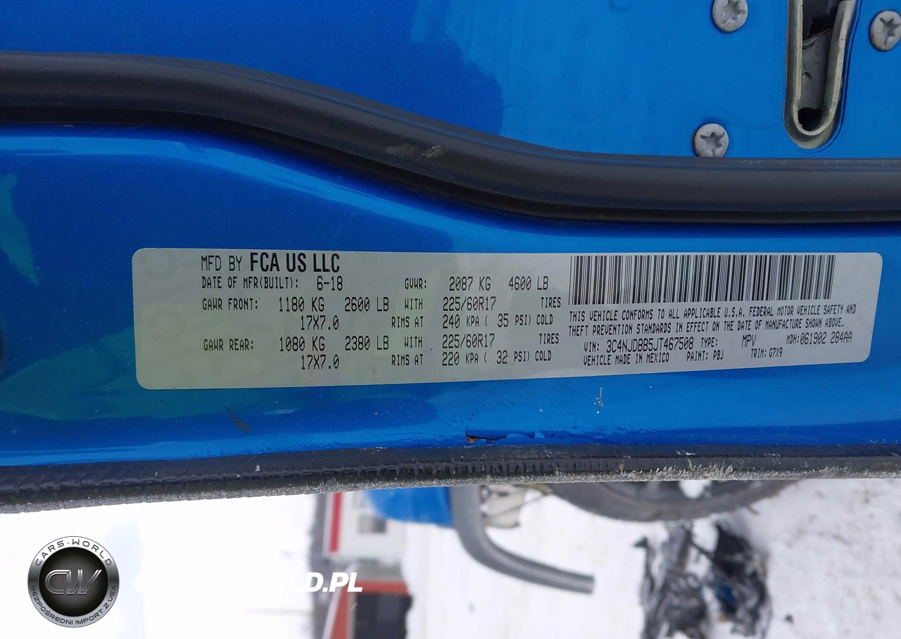 IAAI Nr: I-44215144 VIN: 3C4NJDBB5JT467508 Port: Elizabeth, NJ