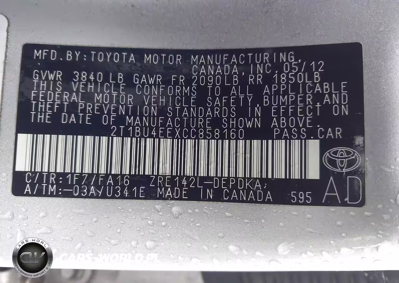 IAAI Nr: I-44215194 VIN: 2T1BU4EEXCC858160 Port: Savannah, GA