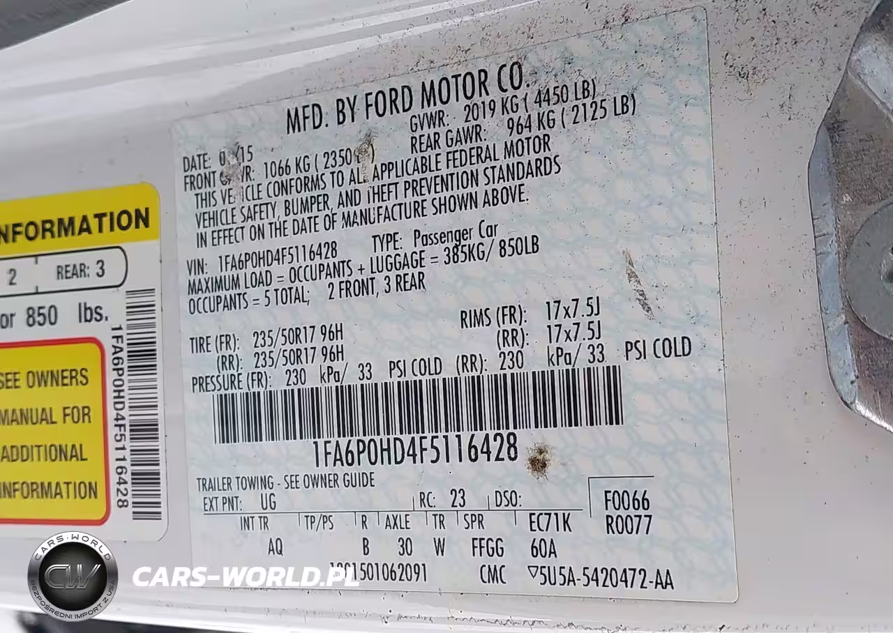 IAAI Nr: I-44215666 VIN: 1FA6P0HD4F5116428 Port: Indianapolis, IN