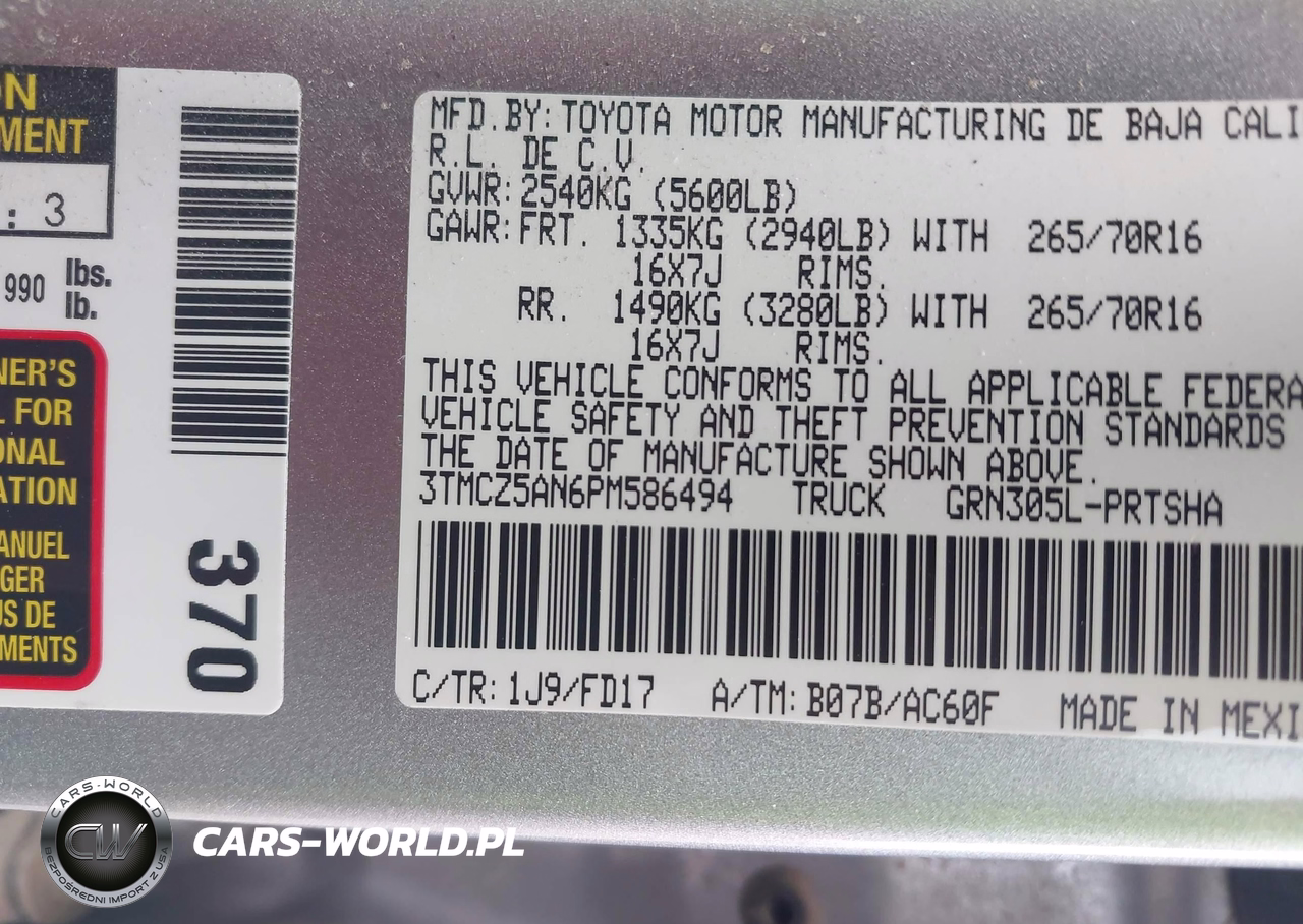 IAAI Nr: I-44217623 VIN: 3TMCZ5AN6PM586494 Port: Houston, TX