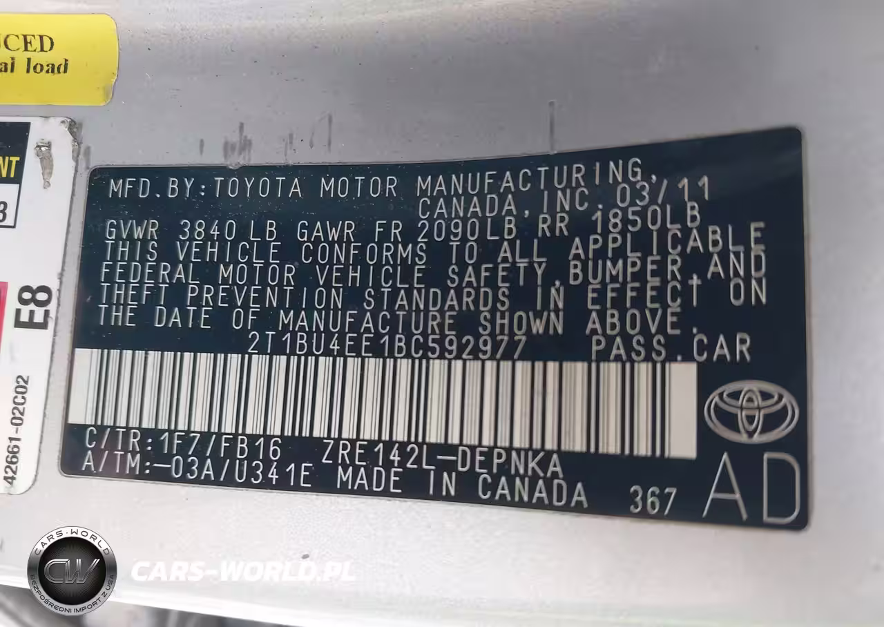 IAAI Nr: I-44221102 VIN: 2T1BU4EE1BC592977 Port: Elizabeth, NJ