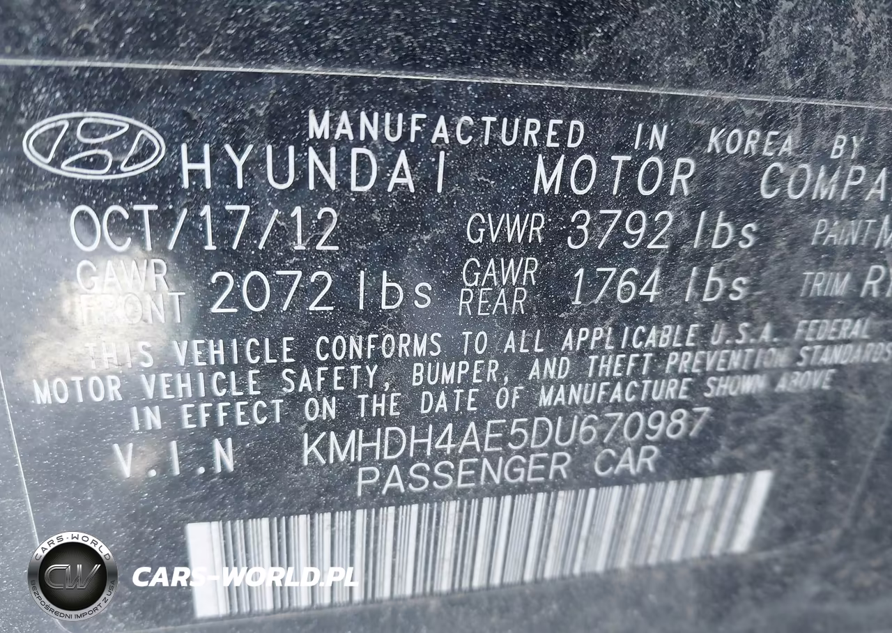 IAAI Nr: I-44223331 VIN: KMHDH4AE5DU670987 Port: Indianapolis, IN