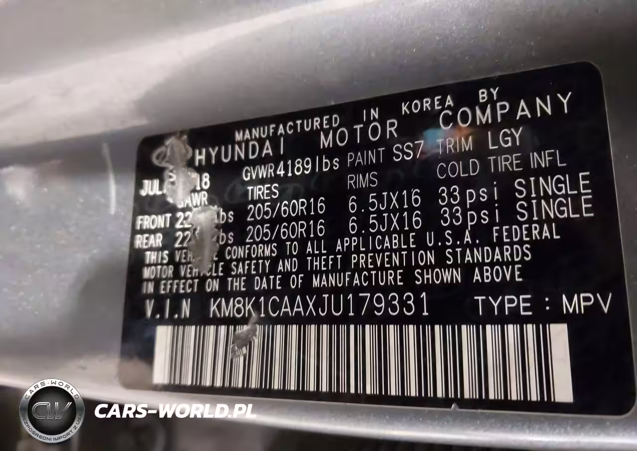 IAAI Nr: I-44225858 VIN: KM8K1CAAXJU179331 Port: Indianapolis, IN