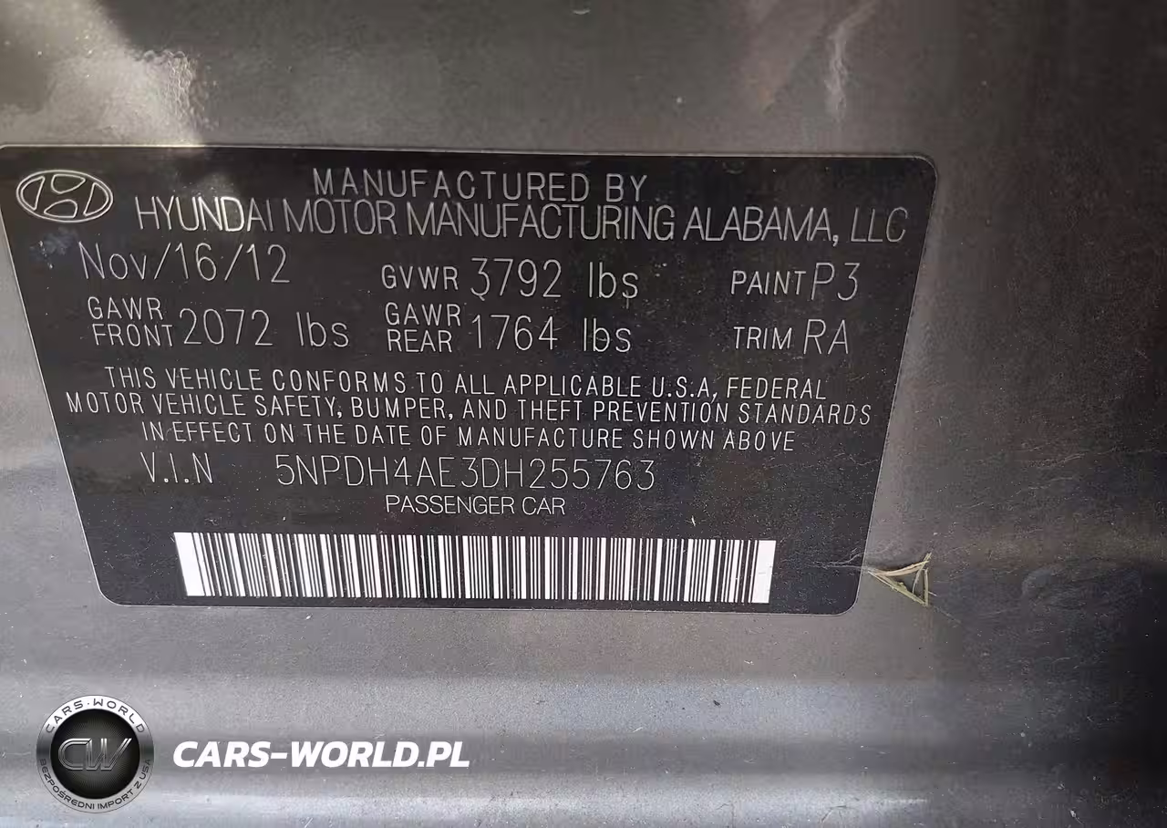 IAAI Nr: I-44226027 VIN: 5NPDH4AE3DH255763 Port: Indianapolis, IN