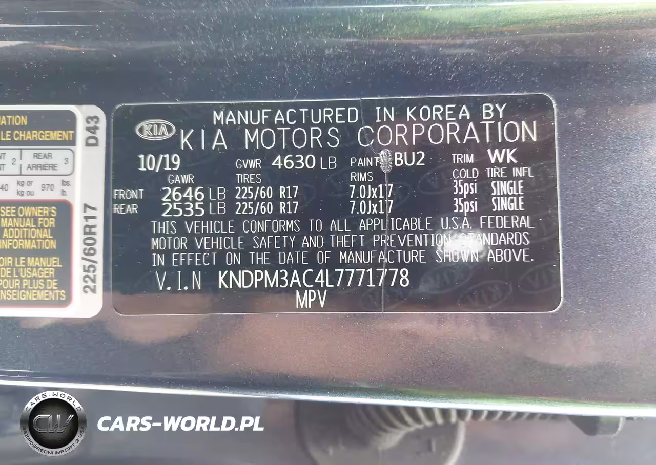 IAAI Nr: I-44229218 VIN: KNDPM3AC4L7771778 Port: Savannah, GA