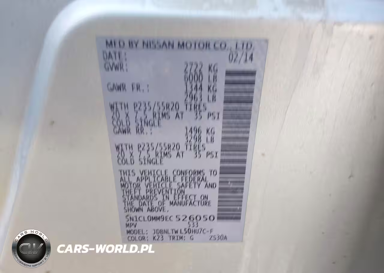 IAAI Nr: I-44230301 VIN: 5N1CL0MM9EC526050 Port: Houston, TX