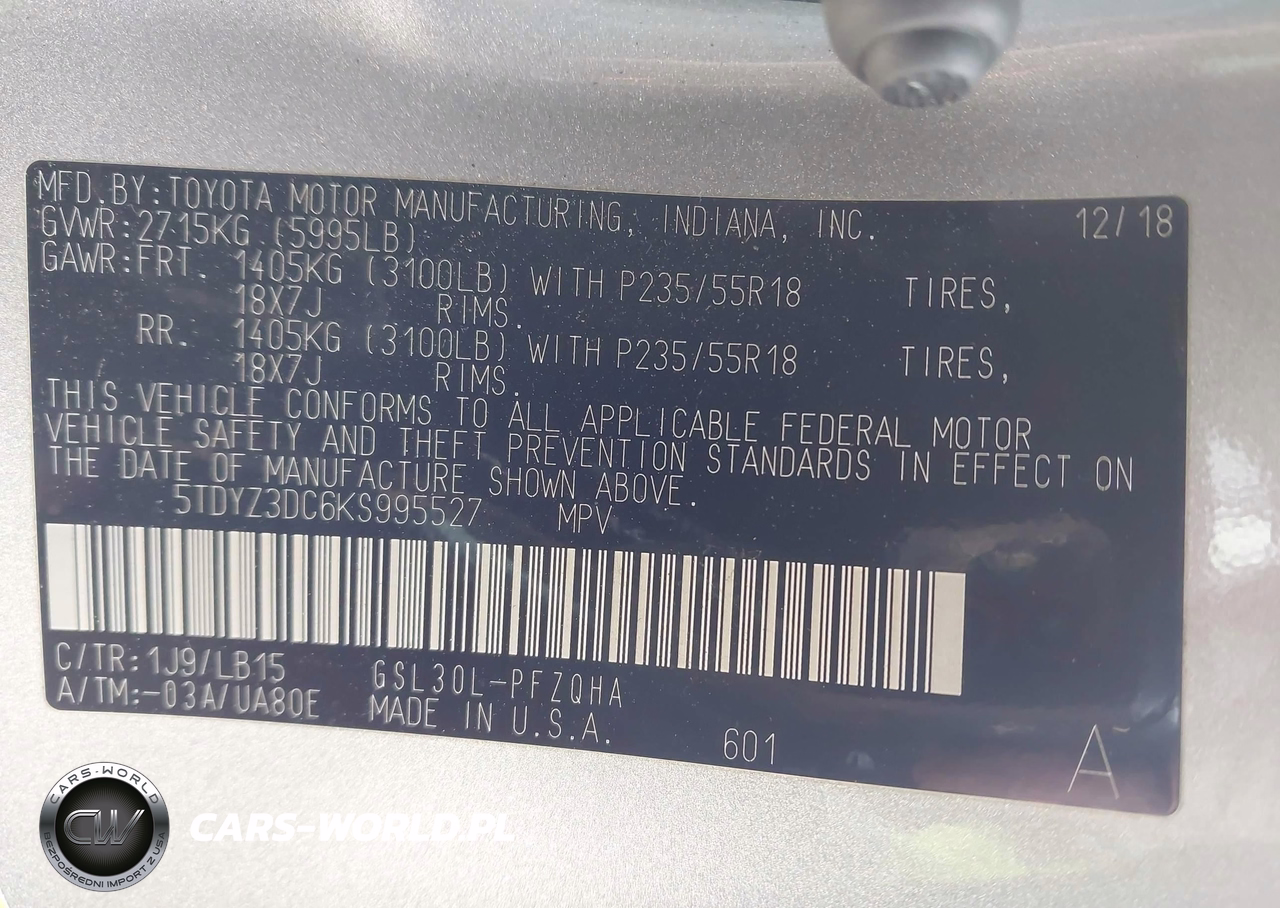 IAAI Nr: I-44231573 VIN: 5TDYZ3DC6KS995527 Port: Savannah, GA