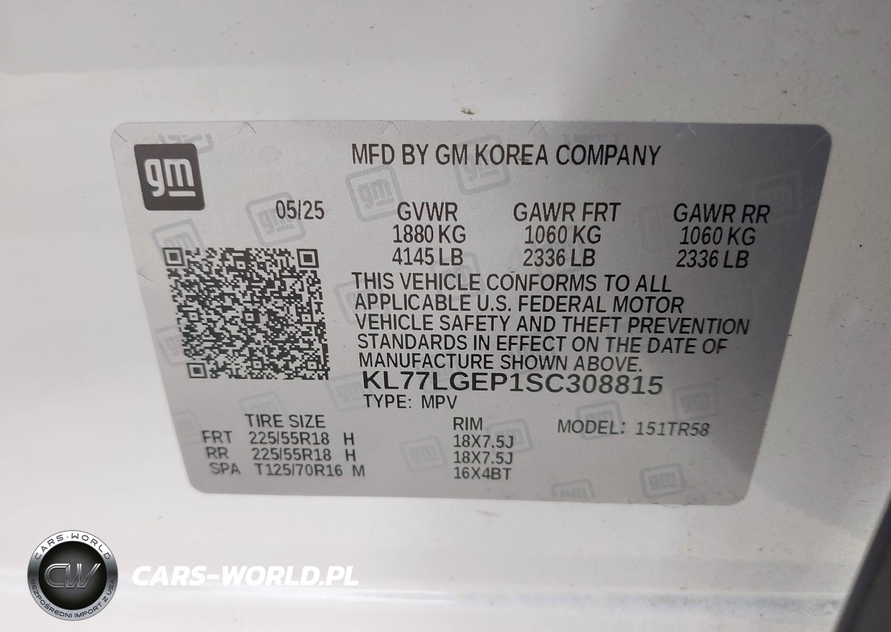 IAAI Nr: I-44236246 VIN: KL77LGEP1SC308815 Port: Houston, TX
