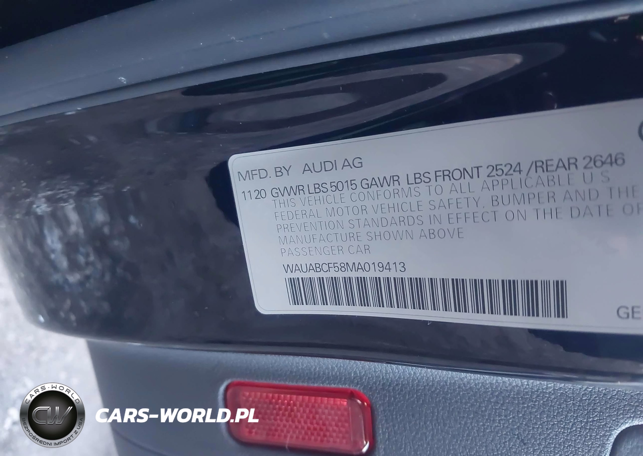 IAAI Nr: I-44237929 VIN: WAUABCF58MA019413 Port: Elizabeth, NJ