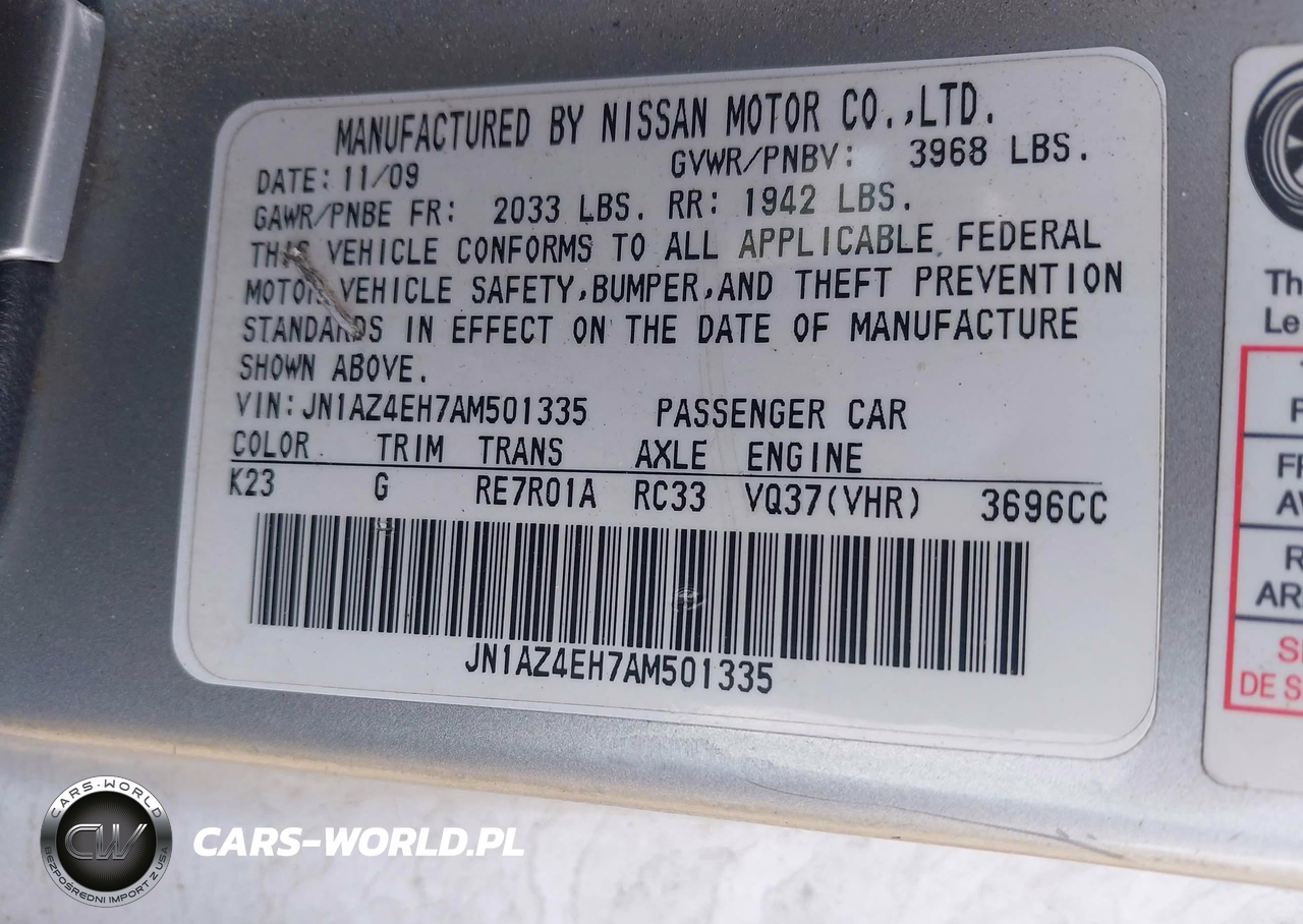 IAAI Nr: I-44239114 VIN: JN1AZ4EH7AM501335 Port: Savannah, GA