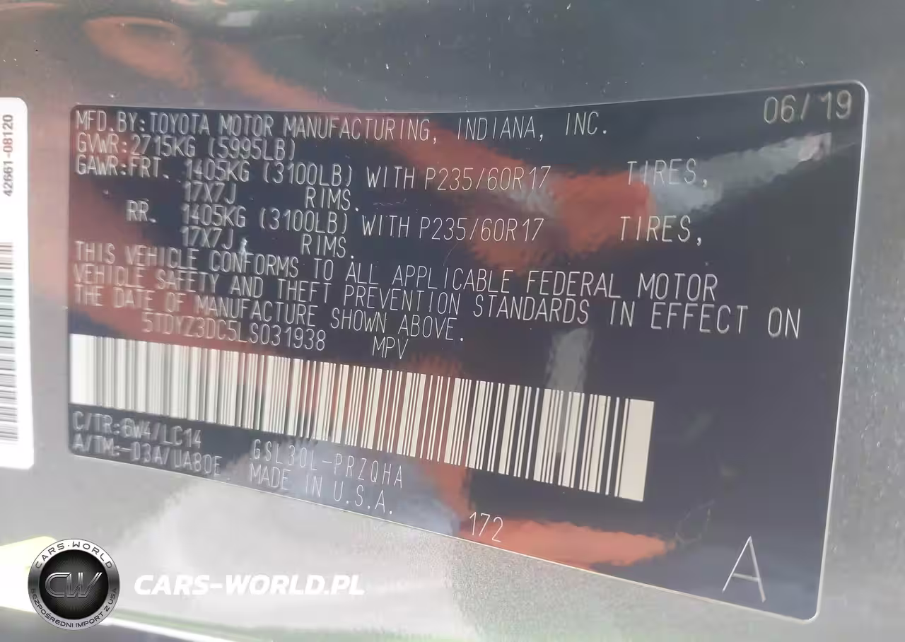 IAAI Nr: I-44248293 VIN: 5TDYZ3DC5LS031938 Port: Savannah, GA