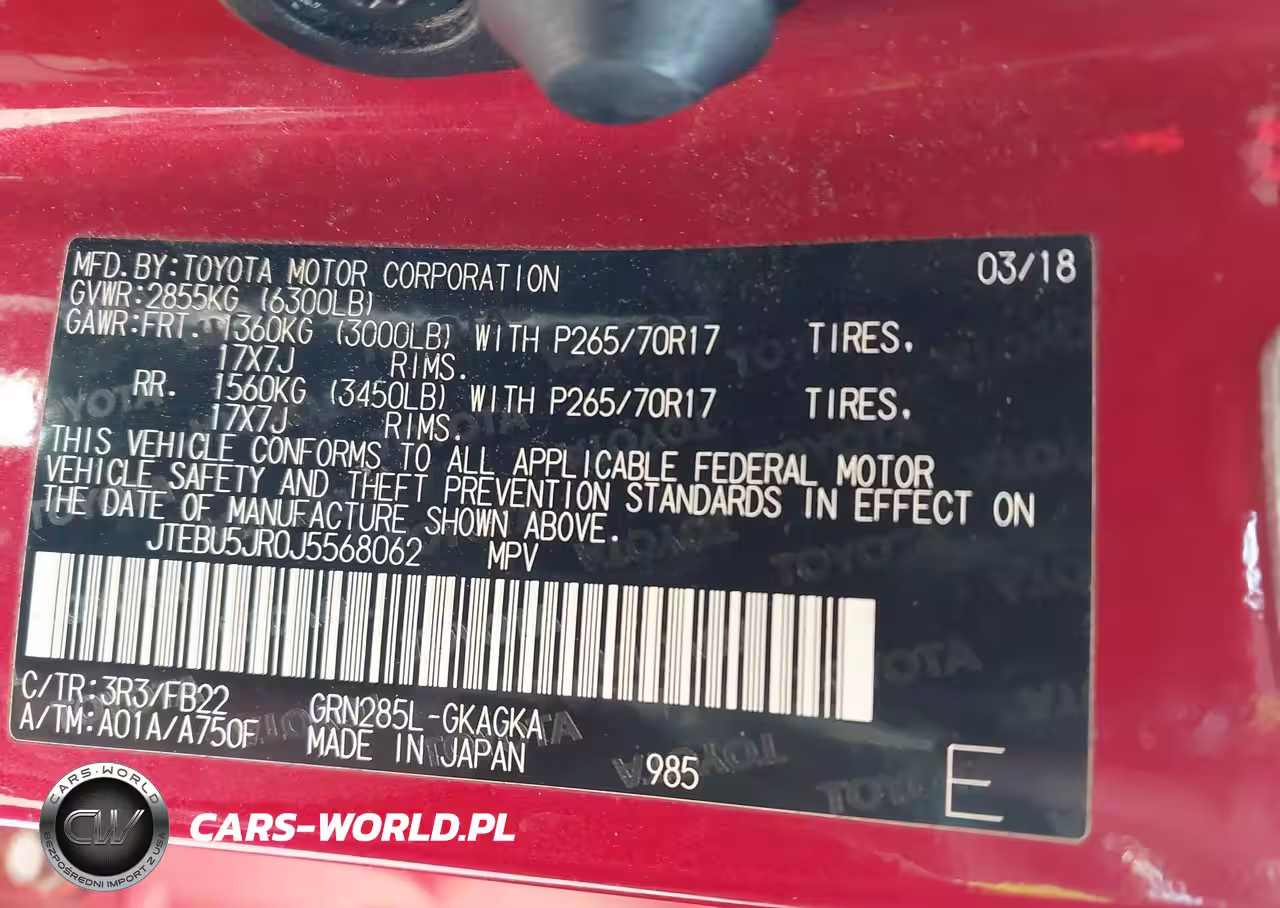 IAAI Nr: I-44250700 VIN: JTEBU5JR0J5568062 Port: Savannah, GA