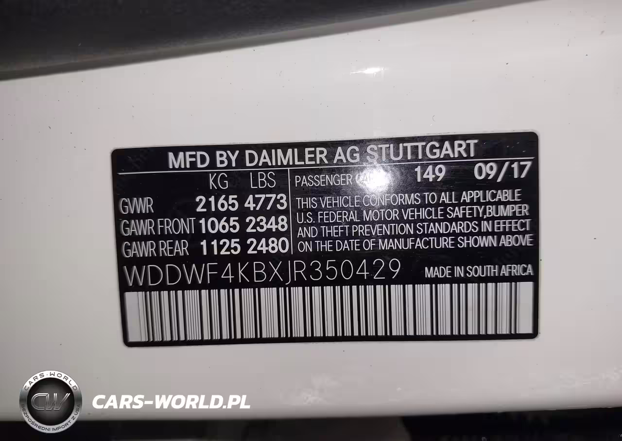 IAAI Nr: I-44253643 VIN: WDDWF4KBXJR350429 Port: Elizabeth, NJ