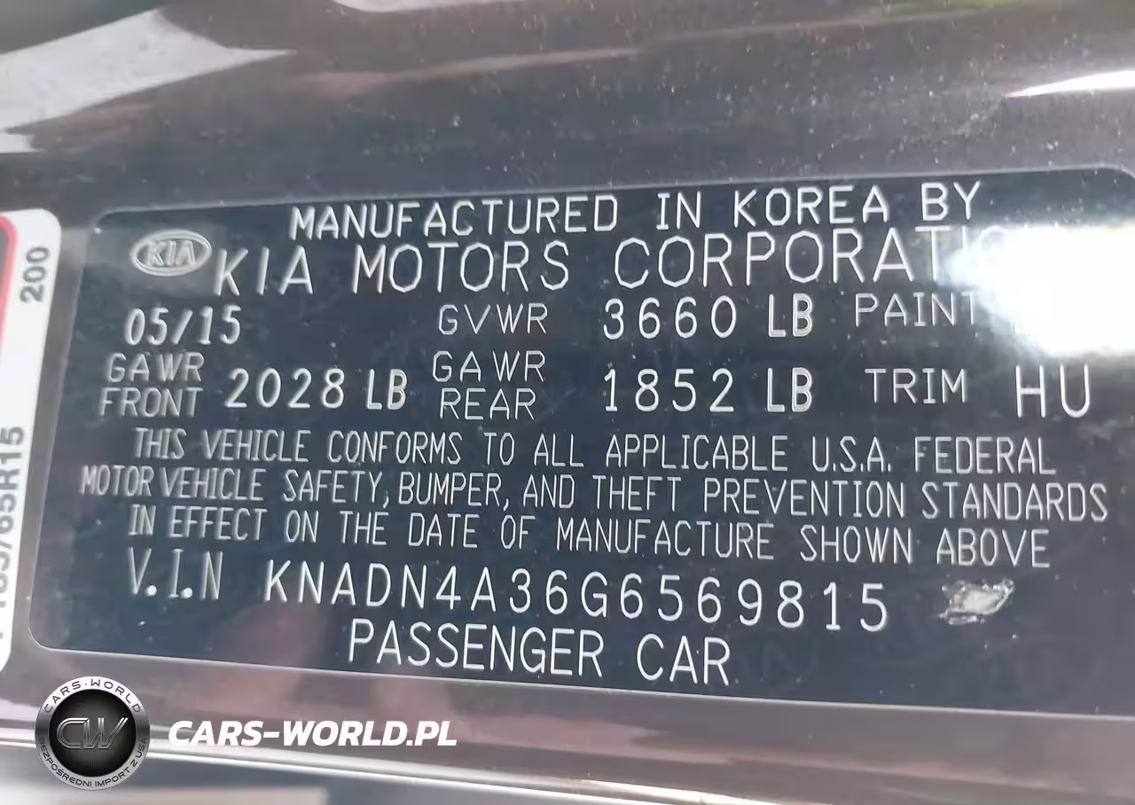 IAAI Nr: I-44254285 VIN: KNADN4A36G6569815 Port: Houston, TX
