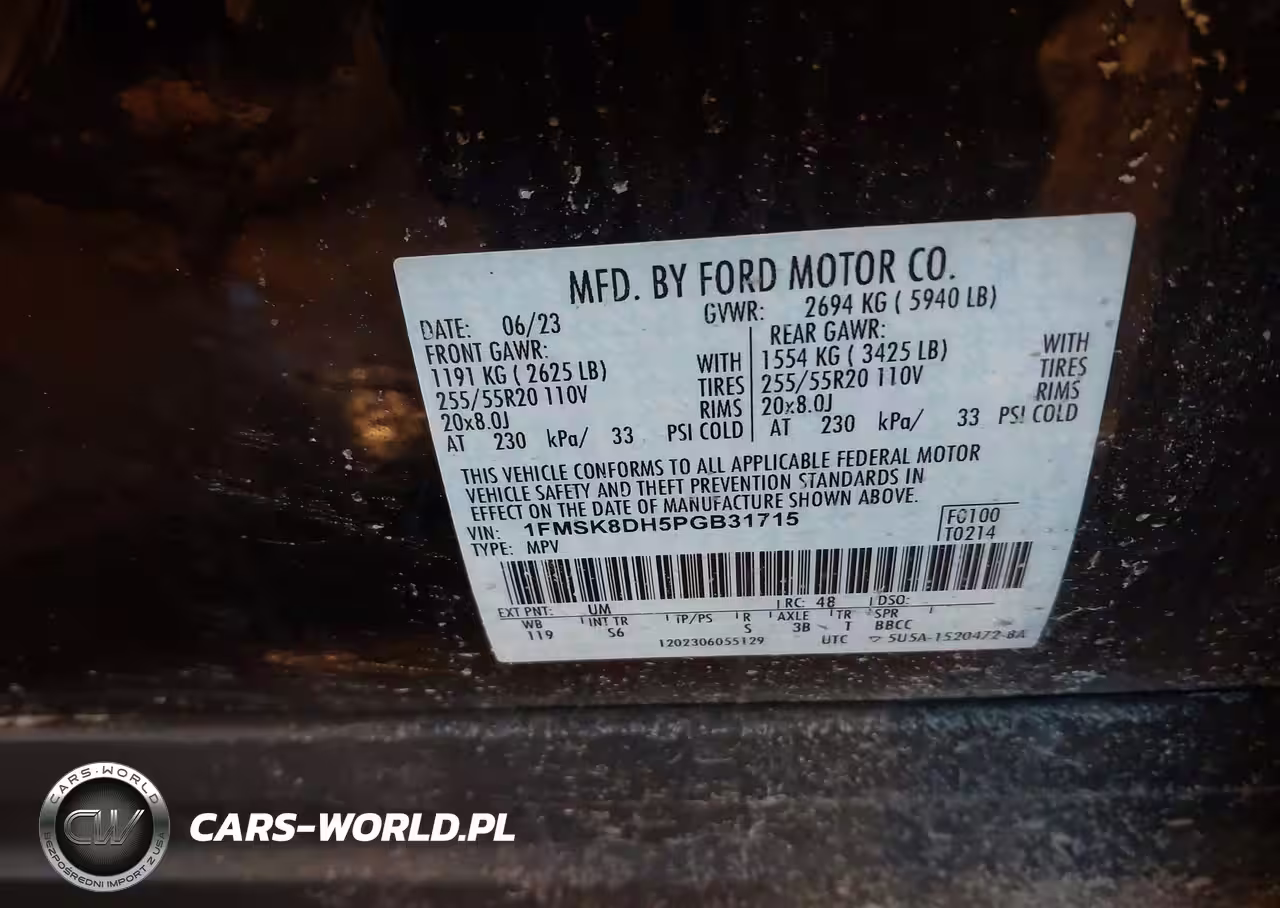 IAAI Nr: I-44256604 VIN: 1FMSK8DH5PGB31715 Port: Indianapolis, IN