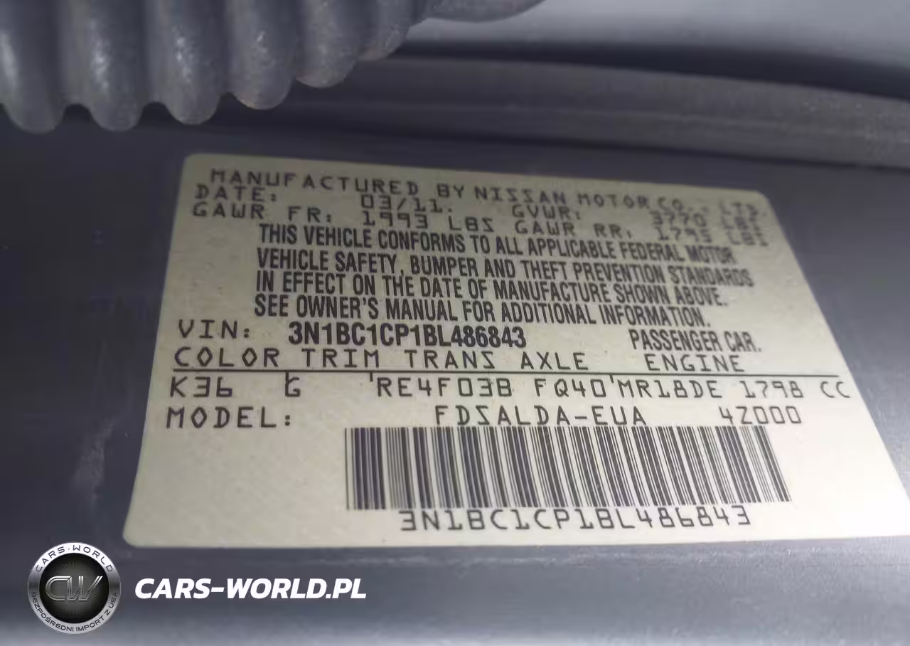 IAAI Nr: I-44256634 VIN: 3N1BC1CP1BL486843 Port: Elizabeth, NJ
