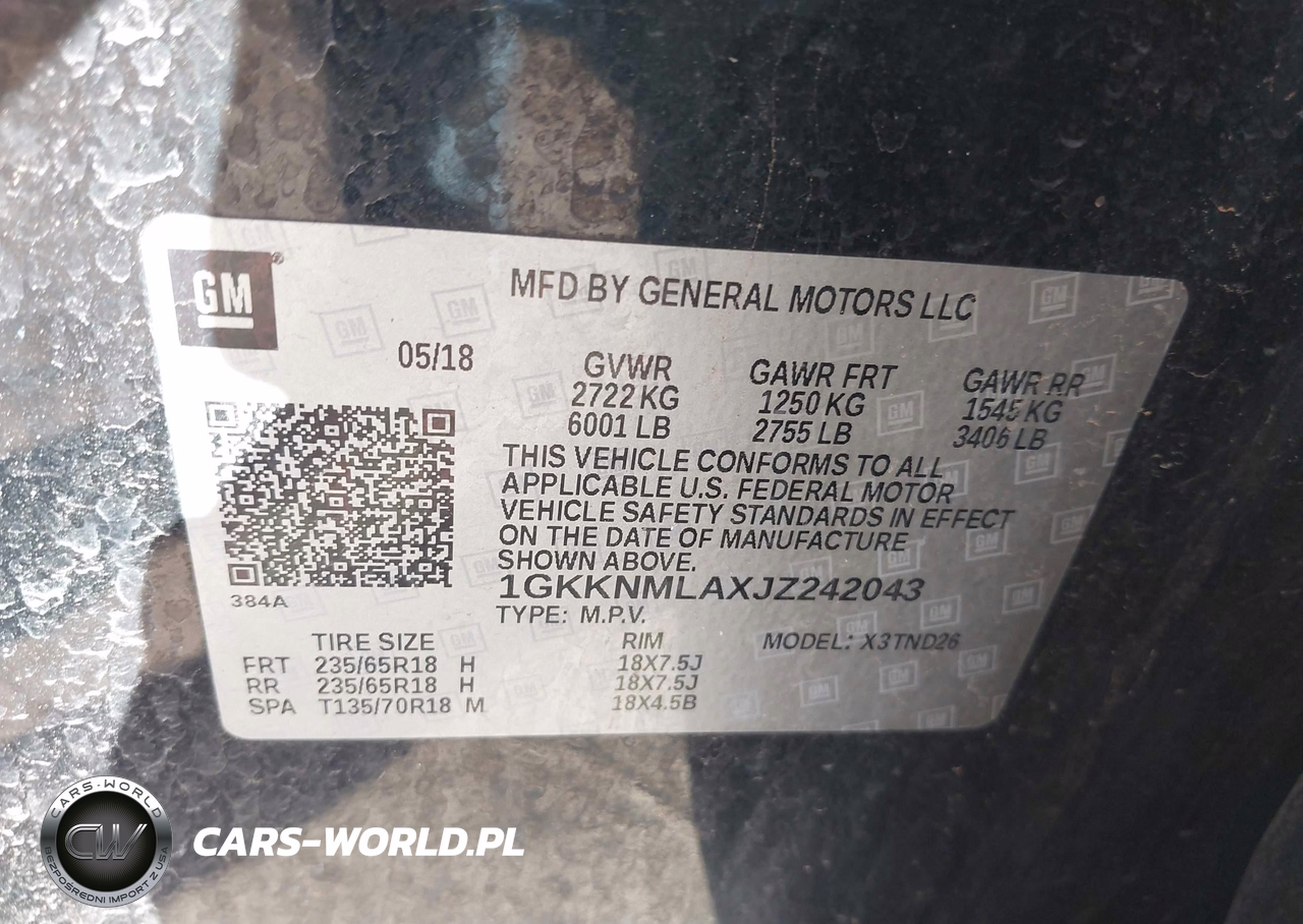IAAI Nr: I-44263237 VIN: 1GKKNMLAXJZ242043 Port: Houston, TX