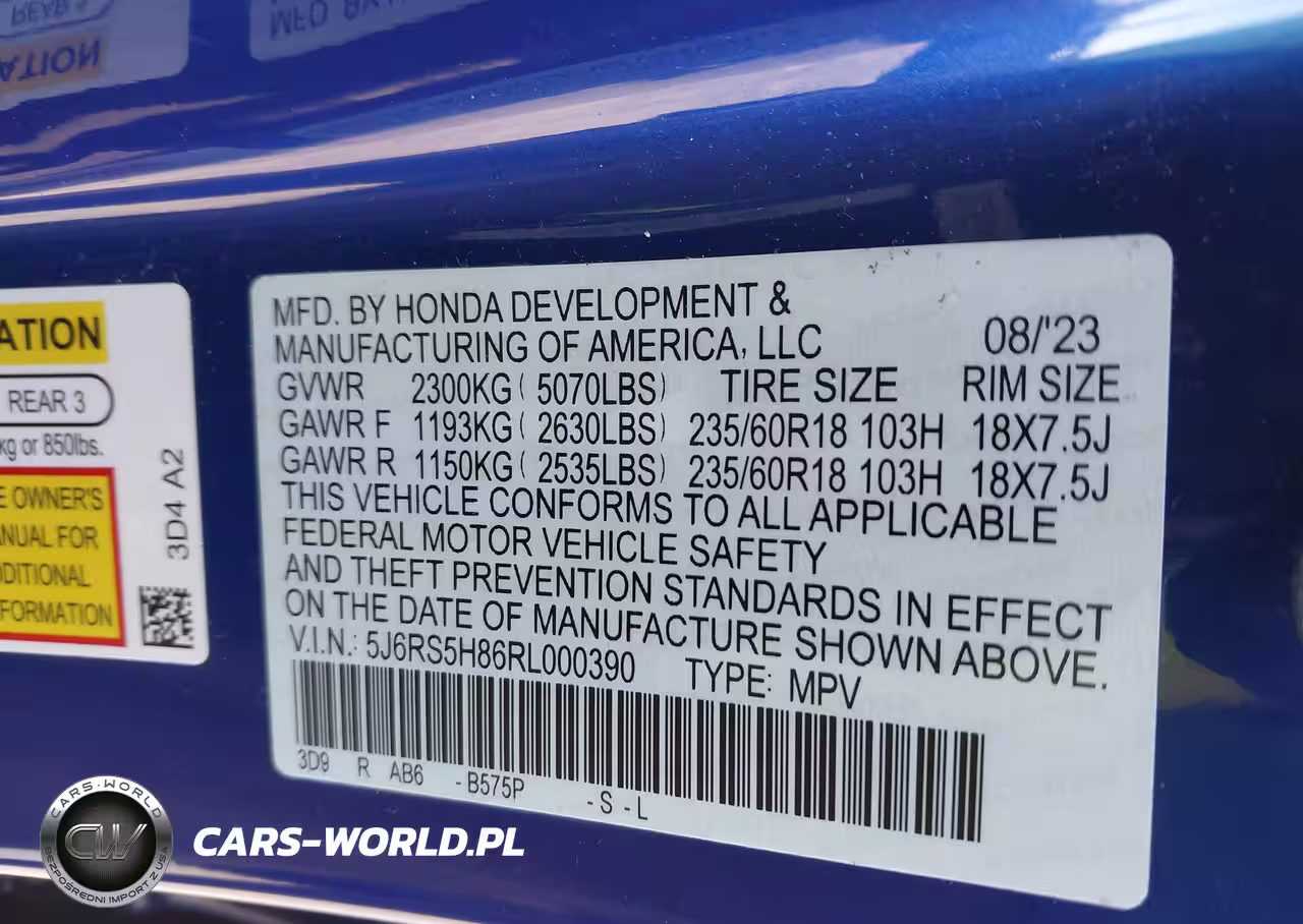 IAAI Nr: I-44266491 VIN: 5J6RS5H86RL000390 Port: Savannah, GA