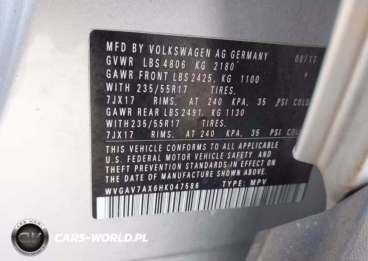 IAAI Nr: I-44271372 VIN: WVGAV7AX6HK047586 Port: Savannah, GA