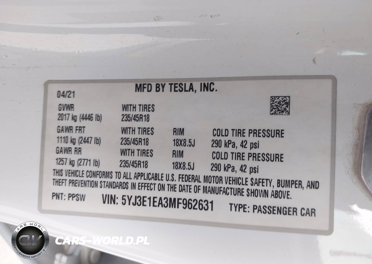 IAAI Nr: I-44271374 VIN: 5YJ3E1EA3MF962631 Port: Houston, TX
