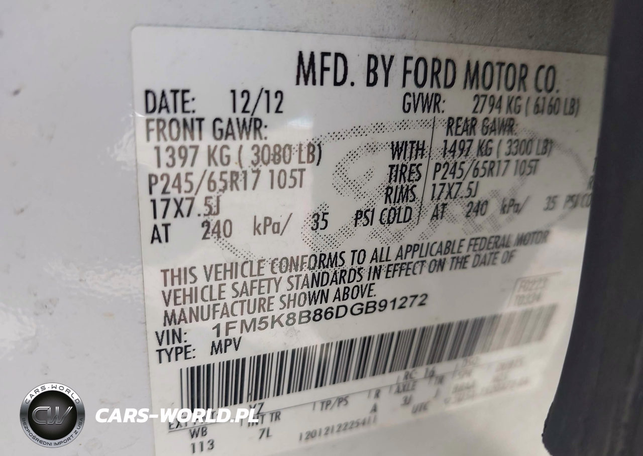 IAAI Nr: I-44272344 VIN: 1FM5K8B86DGB91272 Port: Elizabeth, NJ